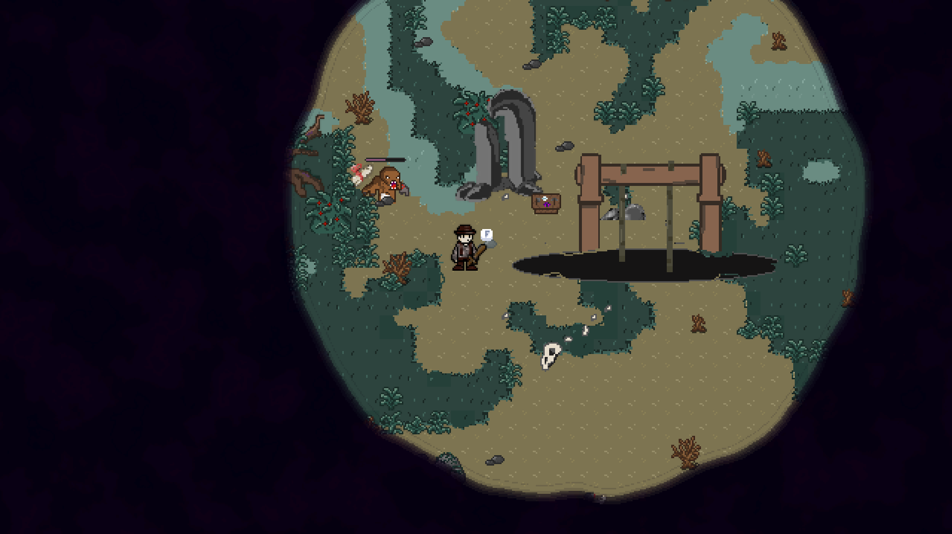 Everdark is a top down 2D survival game where the world is engulved in a dark mist called Everdark. This mist has made natural life on the surface impossible. You emerge from a mysterious hole, fight off monsters, gather resources, upgrade tools, to eventually recover the light!